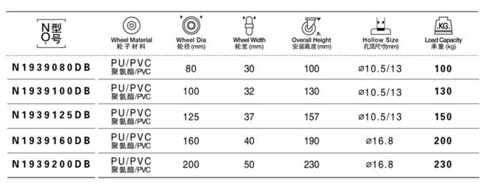 PU/PVC Caster,Roler Bearing,Plain Bore is AvailableI