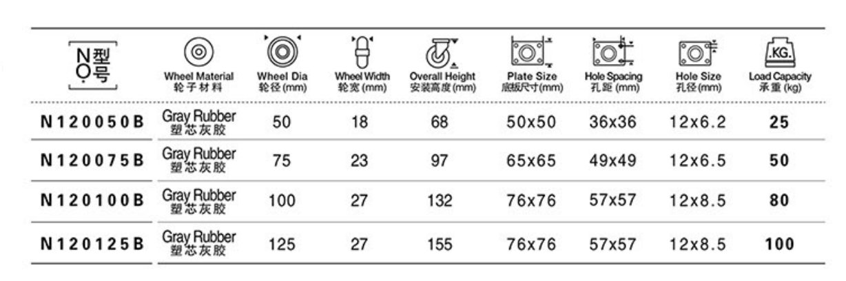 G r a y R u b b e r C a s t e r , P l a i n B e a r i n g
