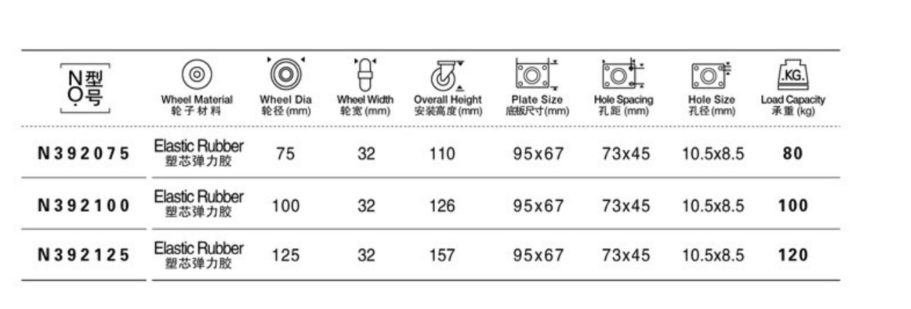 Elastic Rubber Caster,Double Bal Bearing.Roller Bearing is Available