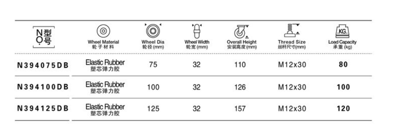 Elastic Rubber Caster,Double Bal Bearing.Roller Bearing is Available