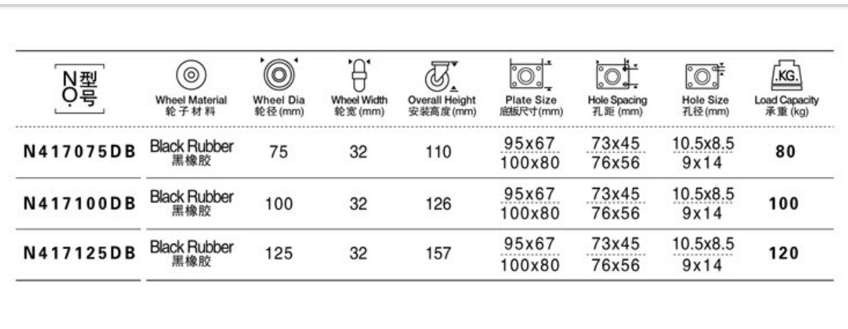 Double Ball Bearing Black Rubber Caste r